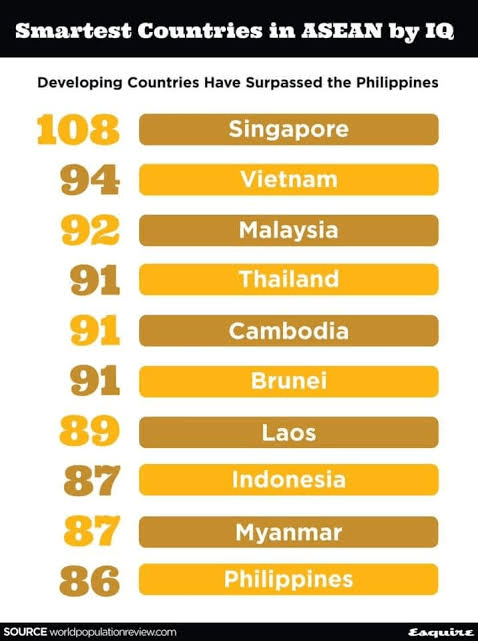 The World Population Review, an independent organization free from political affiliations, provides comprehensive demographic information on various countries. In their study, the Philippines ranked 111th out of 199 countries in terms of IQ, reflecting a below-average performance. Notably, Asian countries dominate the top positions on the list of countries with the highest IQ scores.