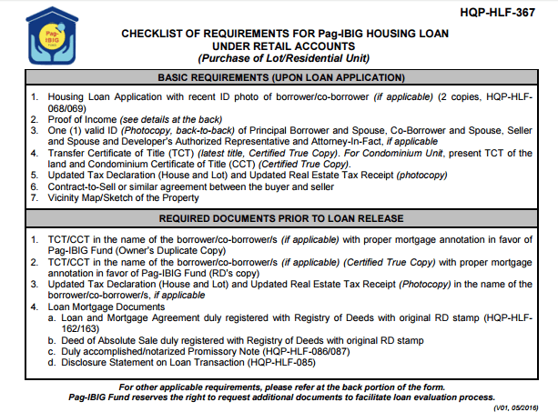Pag IBIG Housing Loan Requirements