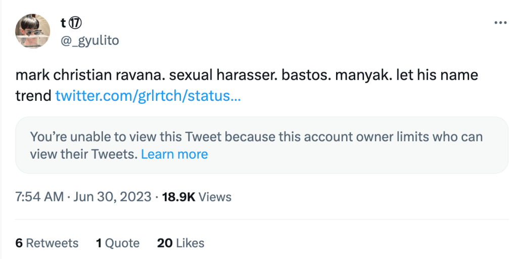 Jeried Ramos Ayade’s Facebook comment, “hirap talaga ipaglaban pag tit* ang pinag uusapan” (It’s really difficult to defend someone when genitals are involved), reflects the growing sentiment that Awra may indeed be at fault.