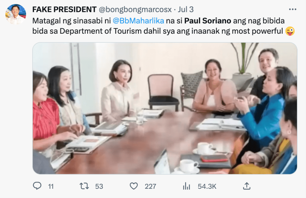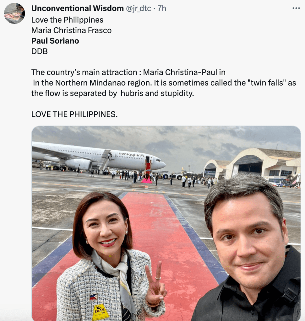 A circulating screenshot alleges that Soriano, mockingly referred to as “bida bida” by netizens, suddenly became involved after the approval of the storyboard presented by DDB Philippines, the winning bidder for the Department of Tourism project.