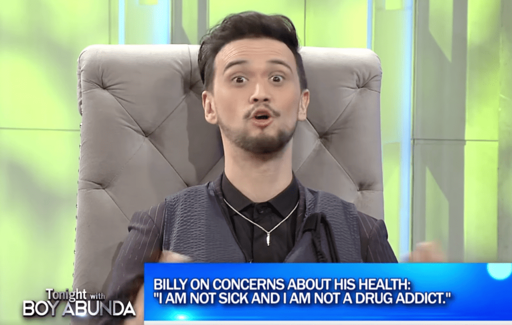 In 2019, during an interview with showbiz personality Boy Abunda, Billy addressed the drug addiction rumors head-on. He firmly stated, “I’m not sick, and I’m not a drug addict… I’ve addressed this issue numerous times!” Despite his consistent efforts to clarify the situation, the actor has continued to face skepticism from some netizens.