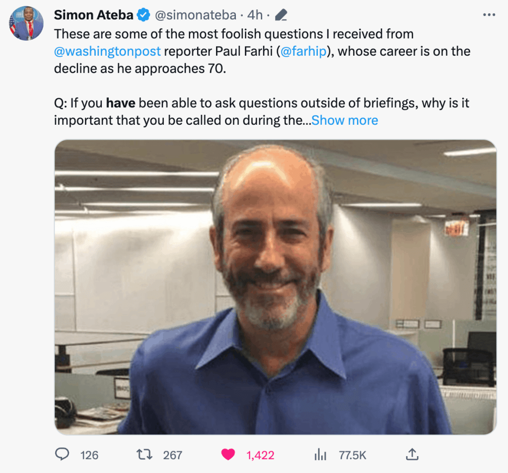 Ateba did not stay silent. Instead, he exposed Farhi and the Washington Post’s alleged racism by sharing the “foolish” questions Farhi had asked him. By shedding light on these questions, Ateba aimed to reveal the dishonesty, bias, and racism within the publication’s coverage.