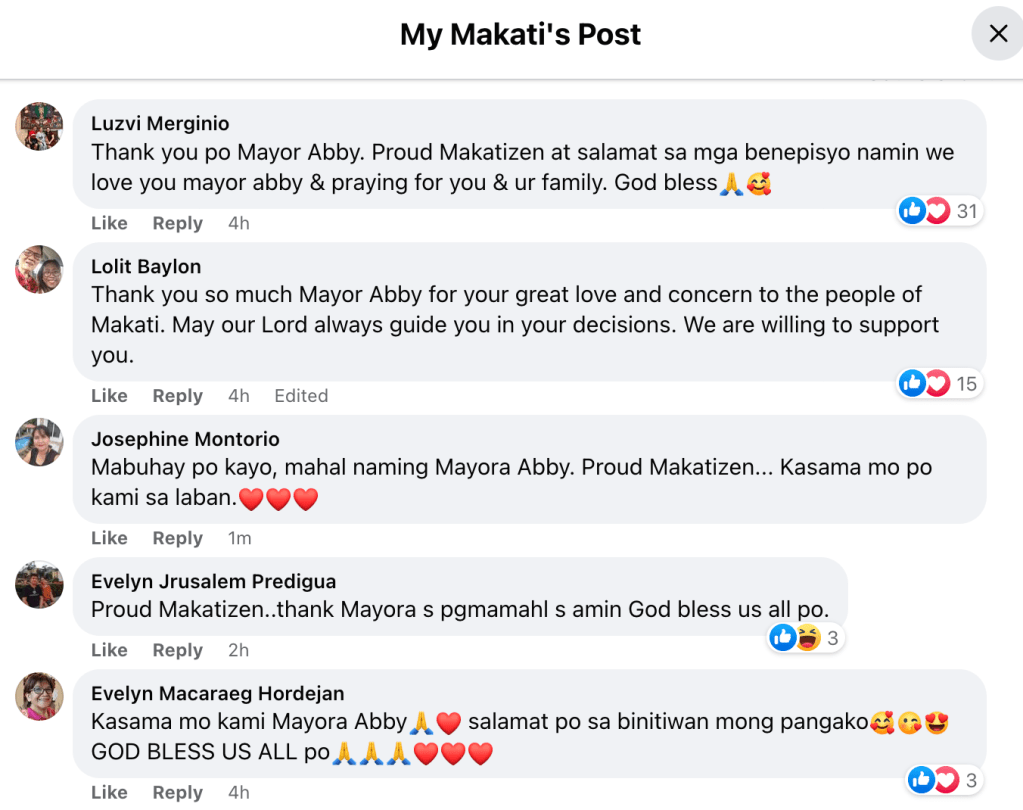 In her speech, Mayor Binay stated, “Kahit na nakatali ang aking mga kamay bilang inyong mayora, handa akong ipagpatuloy ang paglilingkod sa inyo” (Even though my hands are tied as your mayor, I am ready to continue serving you). She reassured Makatizens that she and the city government would explore all possible avenues to ensure that the city’s services and benefits reach them, regardless of their new jurisdiction.