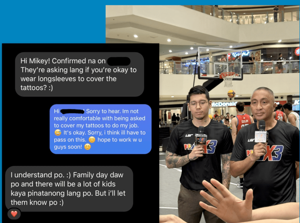 Businesses that hire sports anchor Mikee Reyes to promote their services or appear at their events, especially those attended by children, are within their rights to ask him to cover his tattoos. While Reyes certainly has the right to have and proudly display his tattoos as a form of self-expression, the businesses also have the responsibility to consider their target audience and the impact their choices might have, especially when dealing with younger viewers.