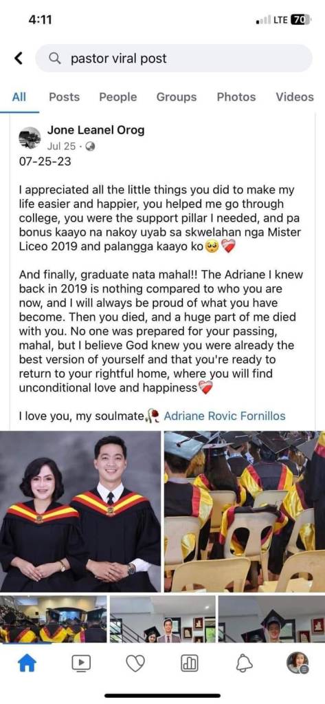 One name that has emerged amidst the digital frenzy is that of Dimver Andales, a pastor at a local Baptist Church in Lapasan, Cagayan de Oro. Andales’ alleged connection to Fornillos’ girlfriend, Jone Leanel Orog, has fueled speculation about a potential love triangle.