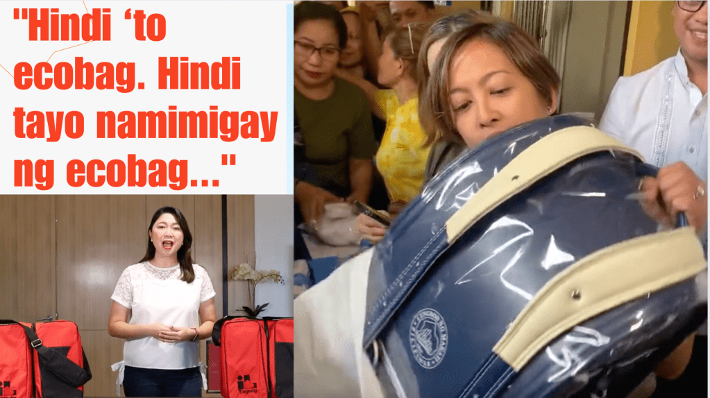 But as Binay jokingly remarked, “Hindi ‘to eco-bag. Hindi tayo namimigay ng eco-bag,” taking a subtle jab at Mayor Cayetano’s alleged distribution of cheap and easily damaged eco-bags to Taguig students.