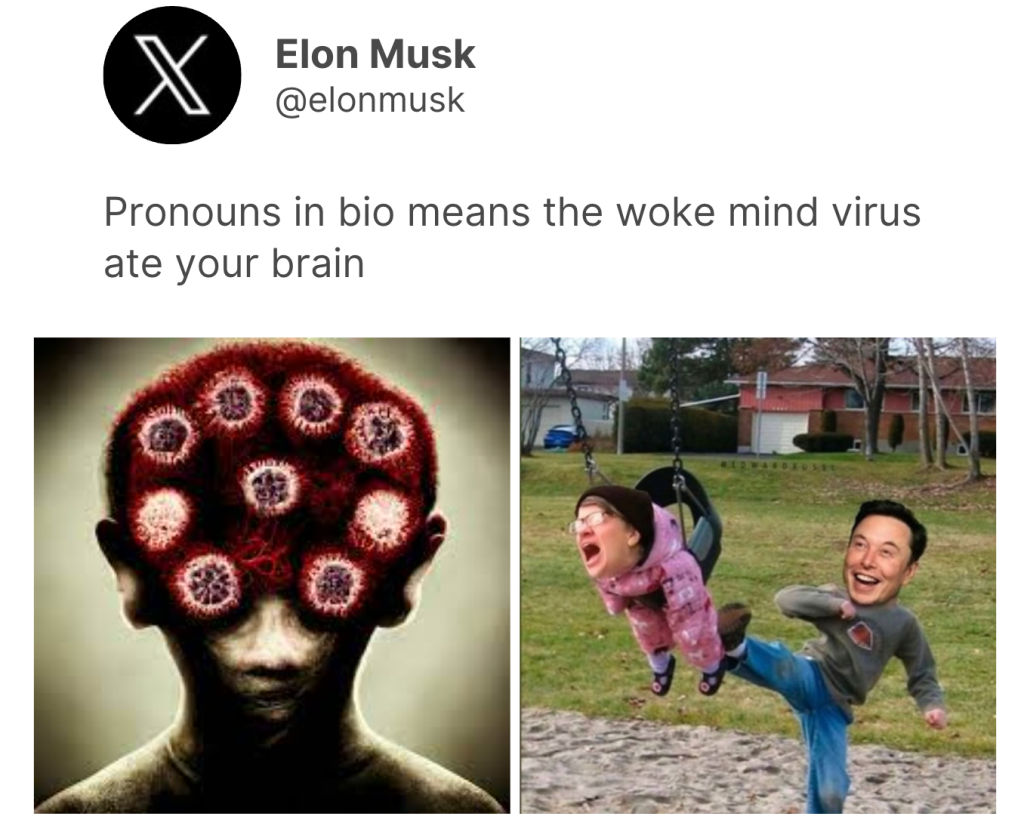 This isn’t the first time Musk has tossed the term “woke mind virus” into the ring and taken a jab at pronouns.