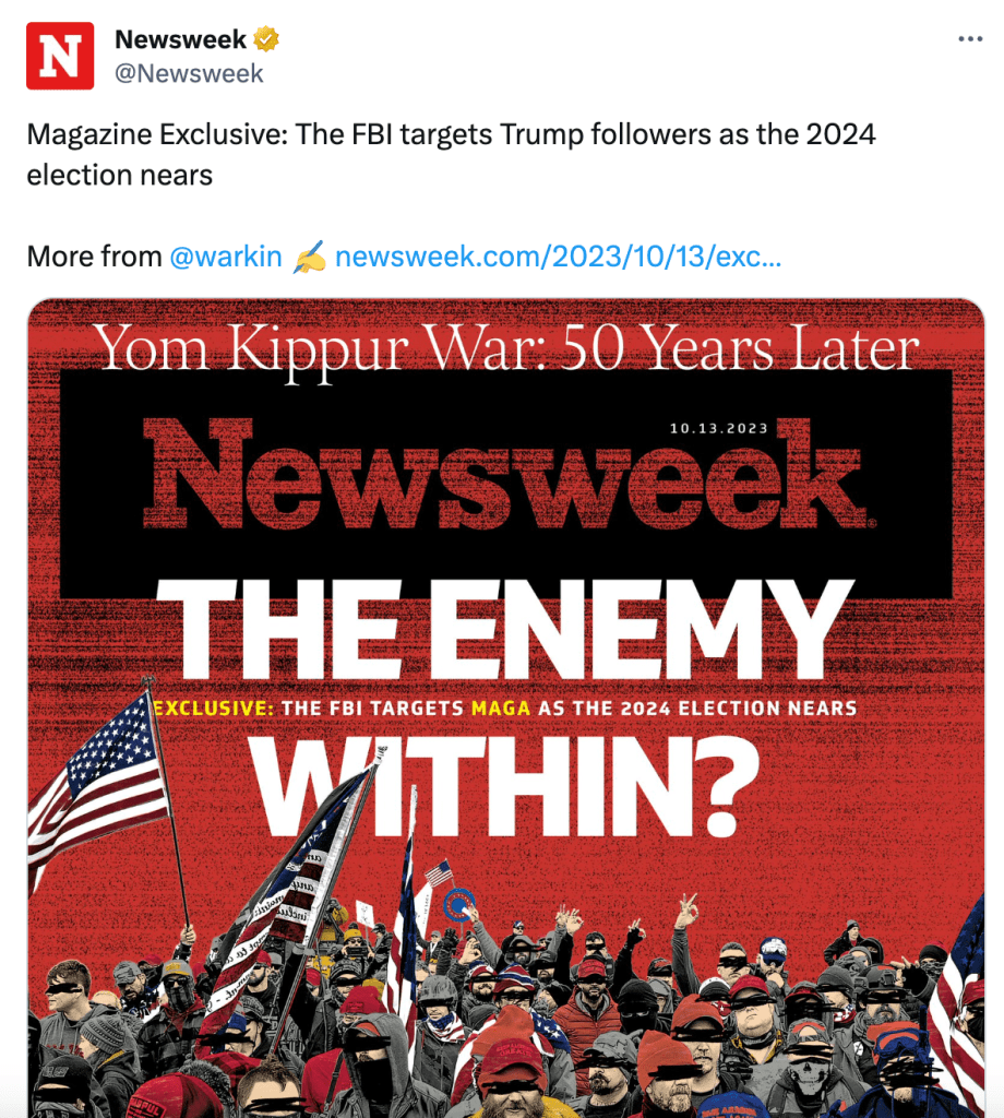 Newsweek, in a move that further amplified the controversy, posted its exclusive news story and magazine cover on the X platform, accompanied by the caption: “Magazine Exclusive: The FBI targets Trump followers as the 2024 election nears.”