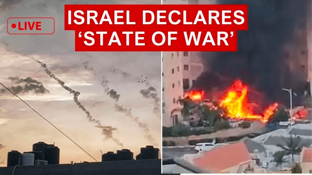 Hamas militants launched thousands of rockets and deployed dozens of fighters into Israeli towns near the Gaza Strip during a surprise early morning attack on a major Jewish holiday, resulting in dozens of casualties and stunning the country. Israel declared itself at war with Hamas, launching airstrikes in Gaza with a determination to exact an “unprecedented price.”