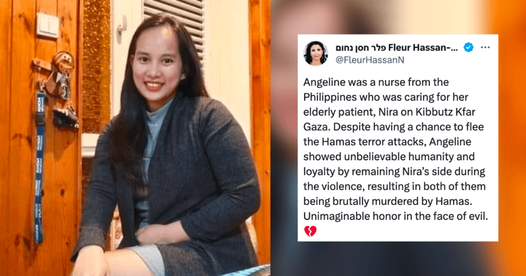 In contrast to Jesalva’s story, a Filipina nurse named Angelyn Peralta Aguirre chose to stay with her elderly patient, Nira, during the ongoing conflict between Israel and Hamas, even when she had the chance to escape.