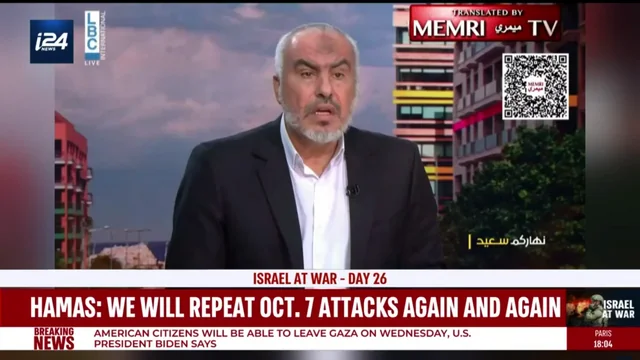 In a televised interview on Lebanese TV, when asked if this meant the annihilation of Israel, Hamad replied, “Yes, of course. The existence of Israel is what causes all that pain, blood, and tears… and must be finished.”