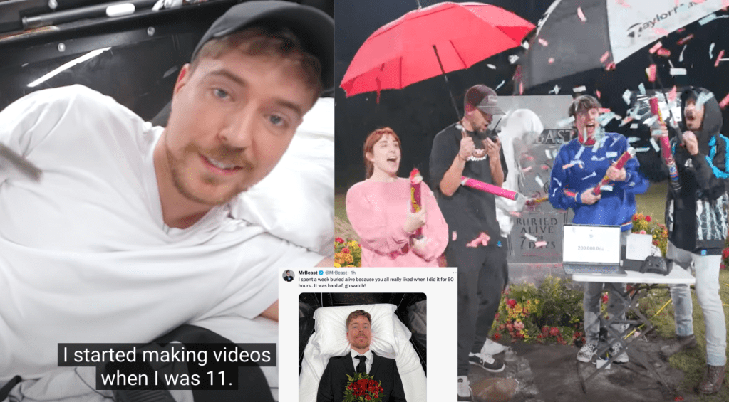 The underground adventure featured MrBeast’s survival tactics, including MRE consumption and makeshift facilities inside the coffin.