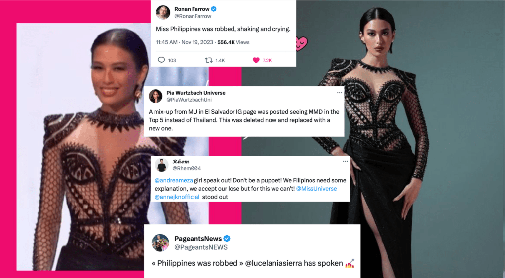 Pageant News (@PageantsNEWS), with nearly 160,000 followers, boldly declares, “Philippines was robbed,” quoting supermodel and pageant expert Lucela Nia Sierra.