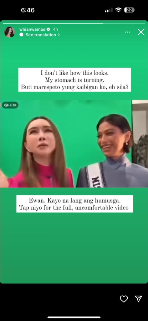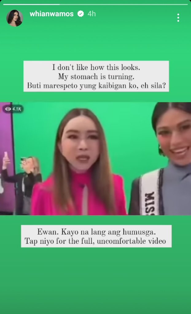 Filipina actress Rhian Ramos, a close friend of Michelle Dee, expressed discomfort with the situation on her Instagram story, sharing a portion of the video and expressing concern for her friend.