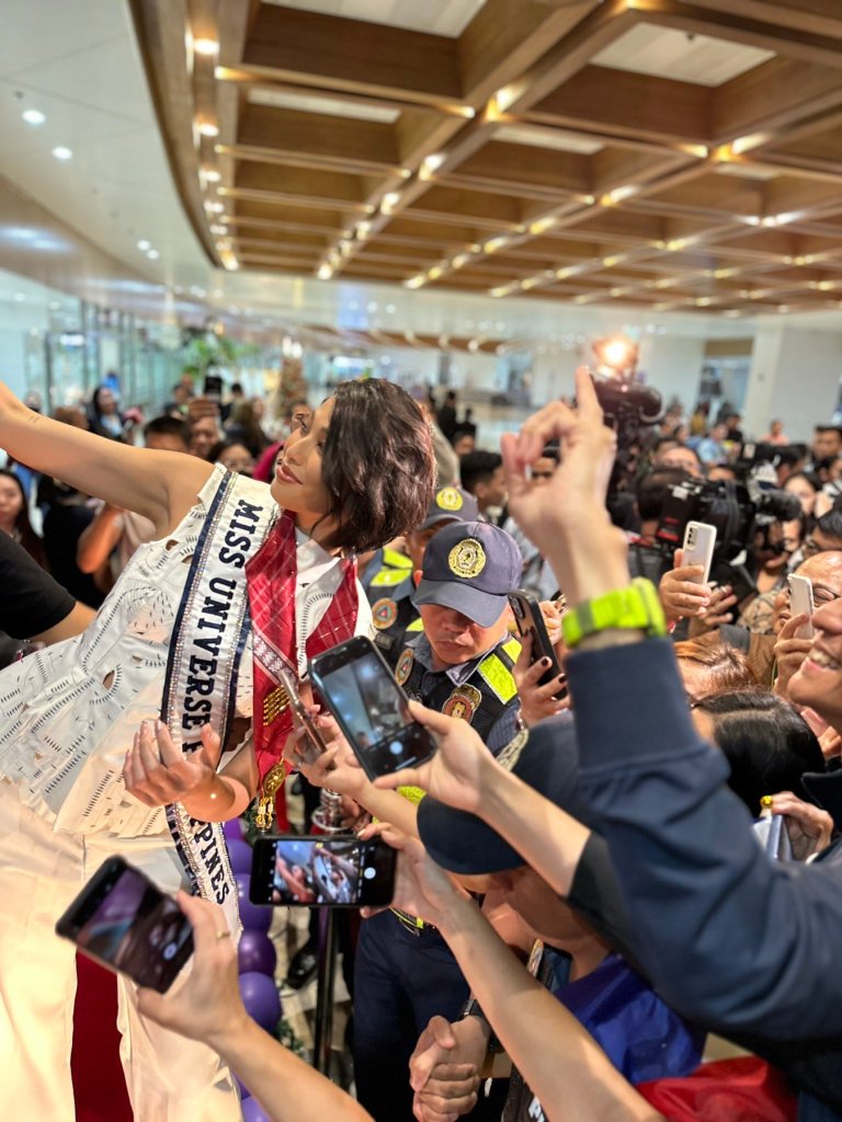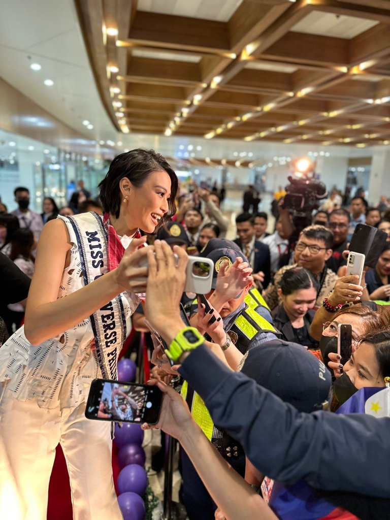 Emerging an hour later at the arrival area, Dee addressed the media and supporters, expressing gratitude, “Sobrang sarap sa pakiramdam na nakauwi na ako. Nakakataba ng puso… Sayang. Pero lahat ng nangyayari may dahilan [It feels great to be home. I did my best to win the title. Too bad we didn’t, but I believe everything happens for a reason].”