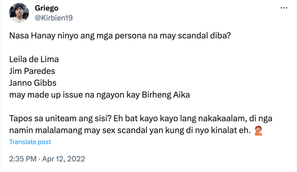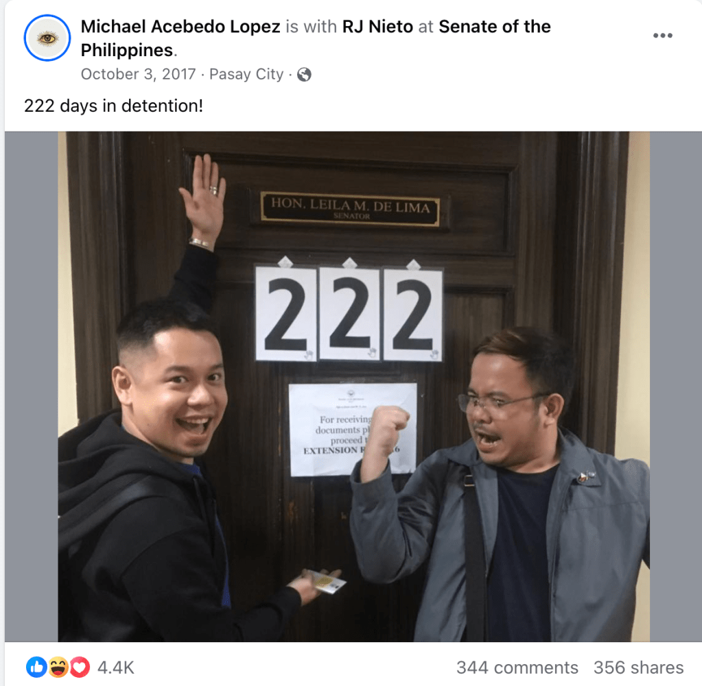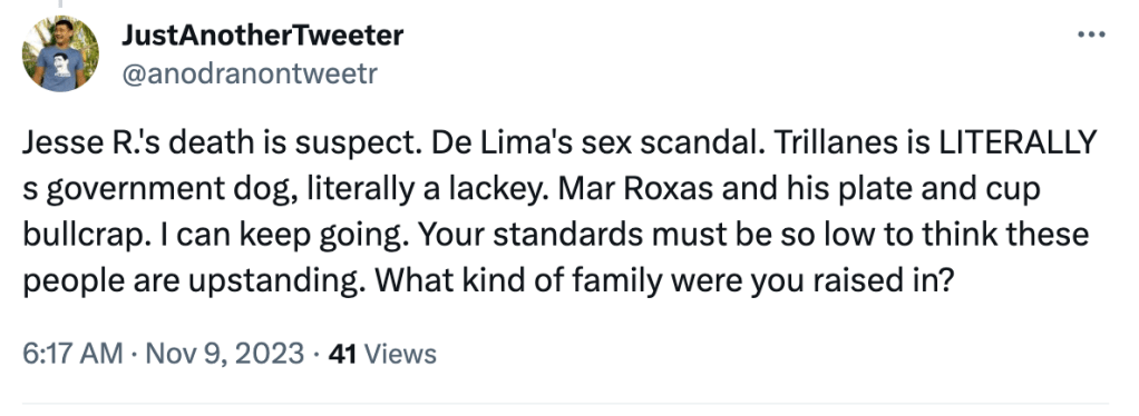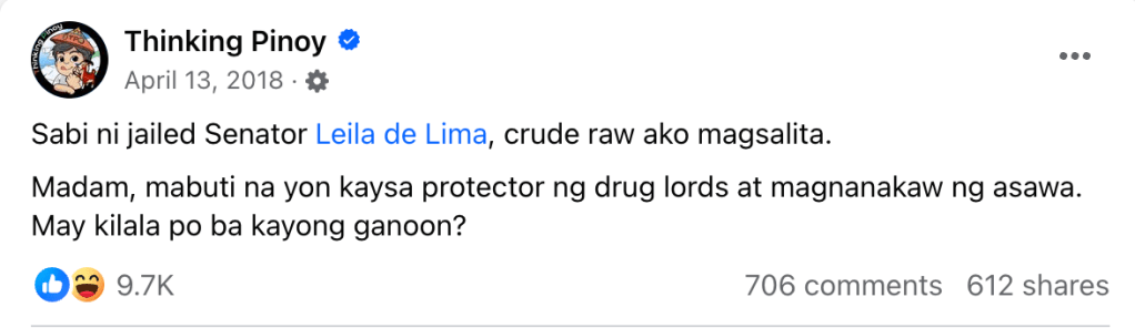 Example: Rey Joseph Nieto’s many scandalous posts against De Lima like this one.
