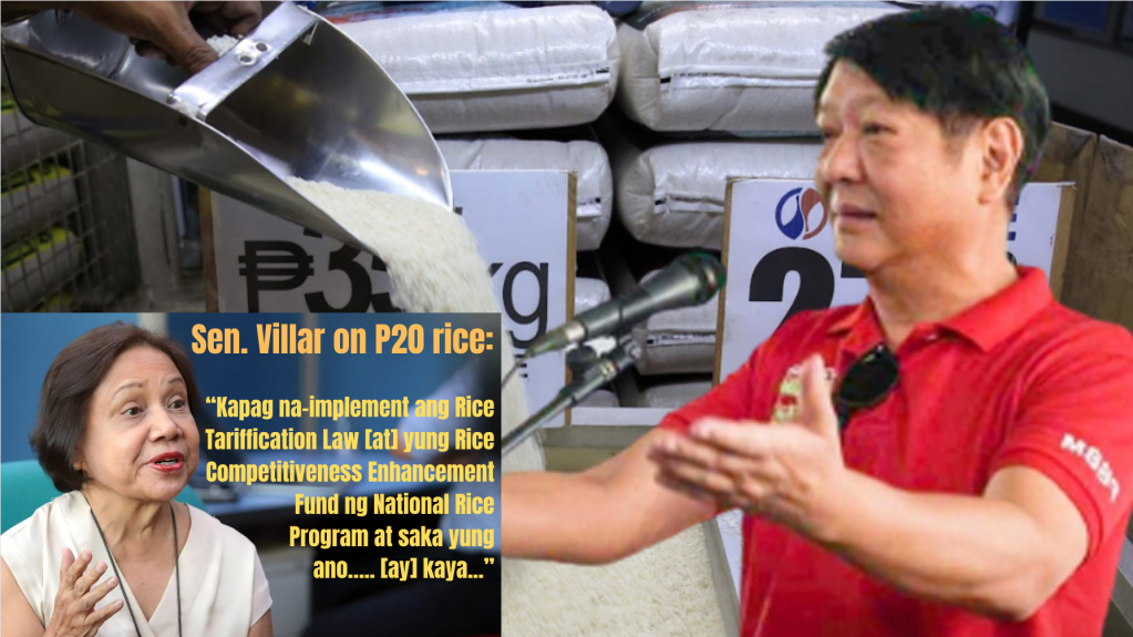 “Kapag na-implement ang Rice Tariffication Law [at] yung Rice Competitiveness Enhancement Fund ng National Rice Program at saka yung ano….. [ay] kaya,” Villar said like a true Marcos fanatic and ally.