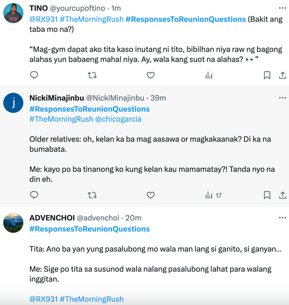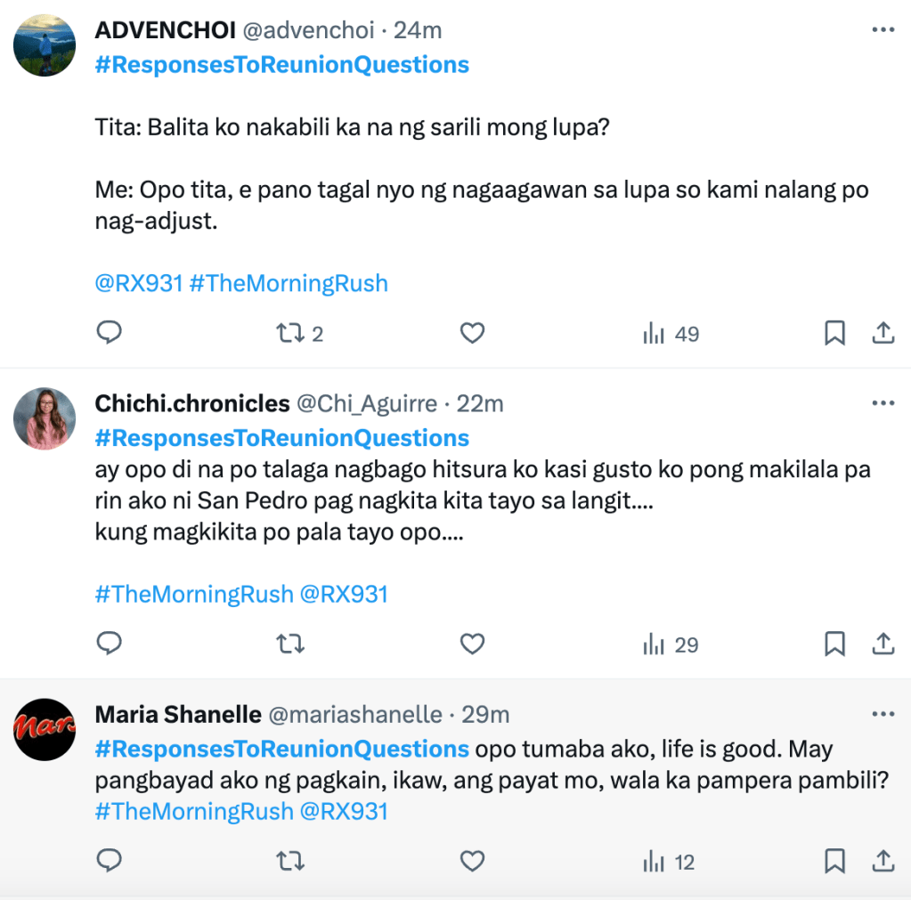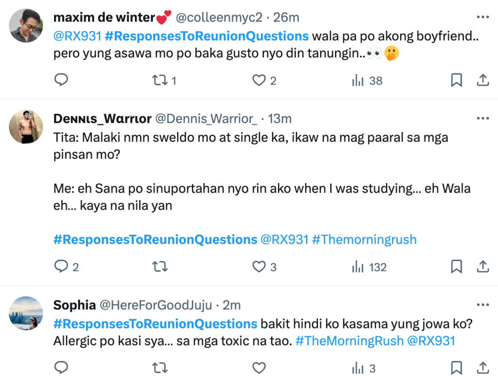 Dominating the dynamic realm of Filipino social media, a unique and amusing trend commands attention—#ResponsesToReunionQuestions.
