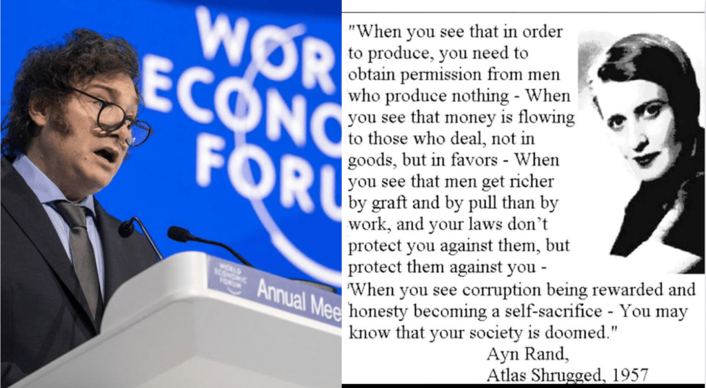 Argentina’s recently elected classical liberal President, Javier Milei, stood on the global stage at the World Economic Forum in Davos, delivering a speech that echoed the sentiments of radical pro-capitalist philosopher Ayn Rand.