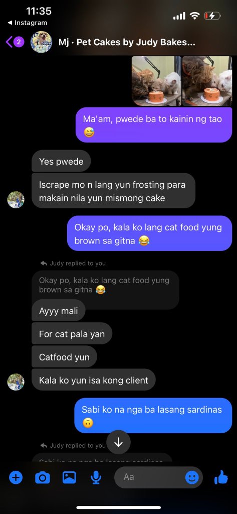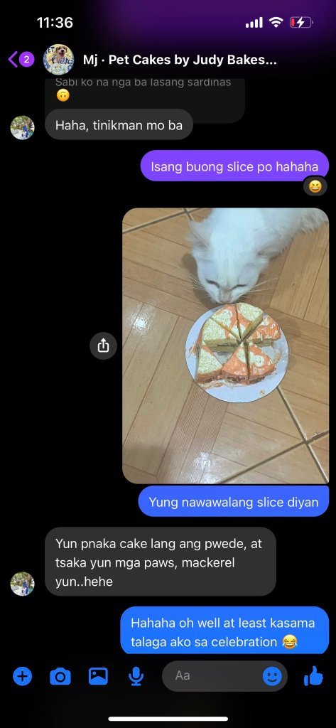 “Cinonfirm ng baker na pang-cats lang yung cake, nakakain na ako ng isang slice” (The baker confirmed it was for cats only, and I ended up eating a slice), he shared, capturing the essence of his unintentional cake tasting.