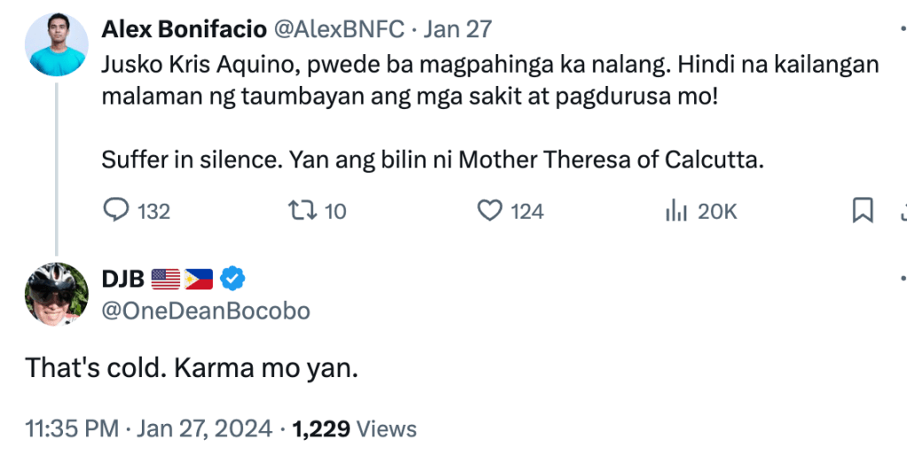 Yet, Bonifacio saw fit to launch a vile attack, ridiculing her for sharing her health journey with her fans. His callous remarks, including the despicable suggestion that she “suffer in silence,” reek of cruelty and malice.
