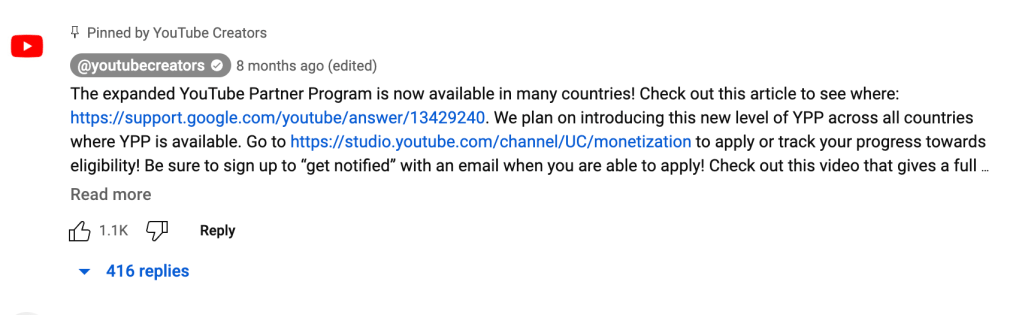 In 2023, YouTube introduced an accessible route to the YPP, requiring: