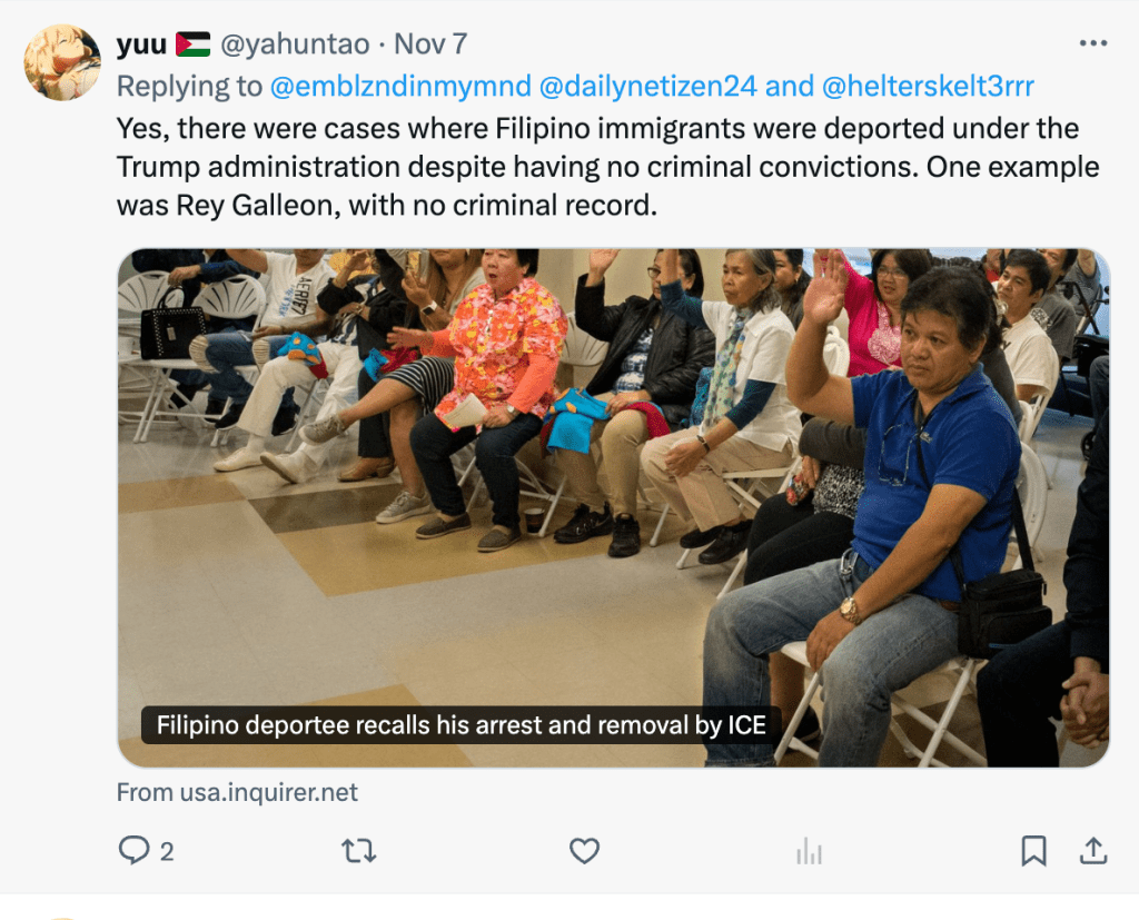 They’ve claimed that Trump intends to deport Filipino immigrants, including those who “naively” supported him. This perspective ignores the fact that Trump previously served from 2016 to 2020.