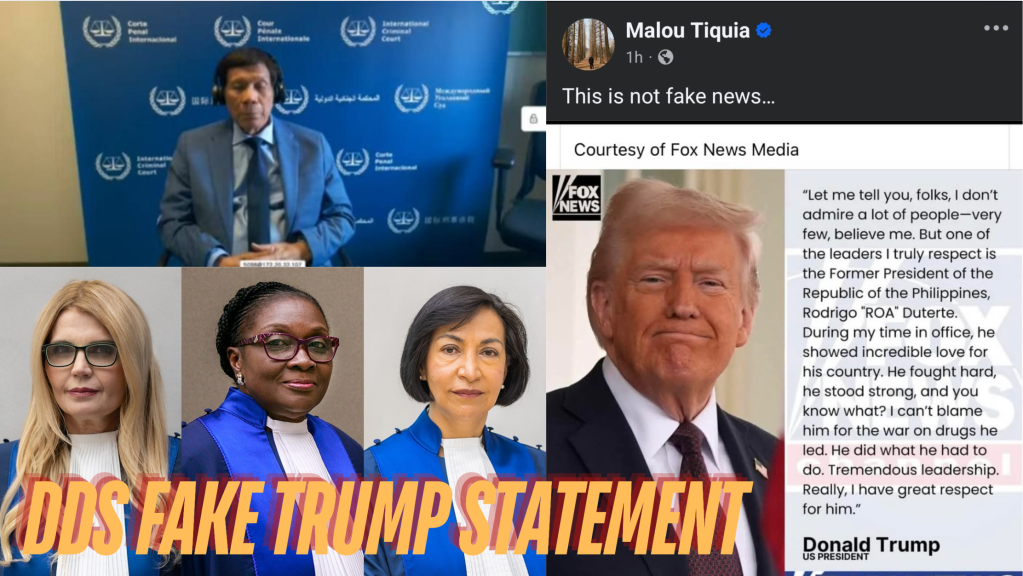 However, as Duterte made his first appearance before the ICC earlier today, fact-checkers and officials confirm no such statement from Trump or his administration exists—exposing a coordinated DDS effort to bolster their embattled leader with fabricated U.S. support.