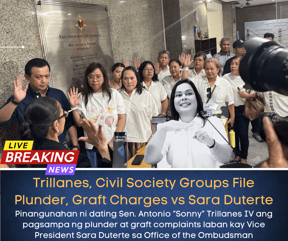 Sumabog ang isang political firestorm nitong Miyerkules matapos pangunahan ni dating Sen. Antonio “Sonny” Trillanes IV ang paghahain ng plunder at graft complaints laban kay Vice President Sara Duterte sa Office of the Ombudsman kaugnay ng umano’y malawakang pag-abuso sa confidential funds at iba pang anomalya noong siya’y Education secretary at mayor ng Davao City.