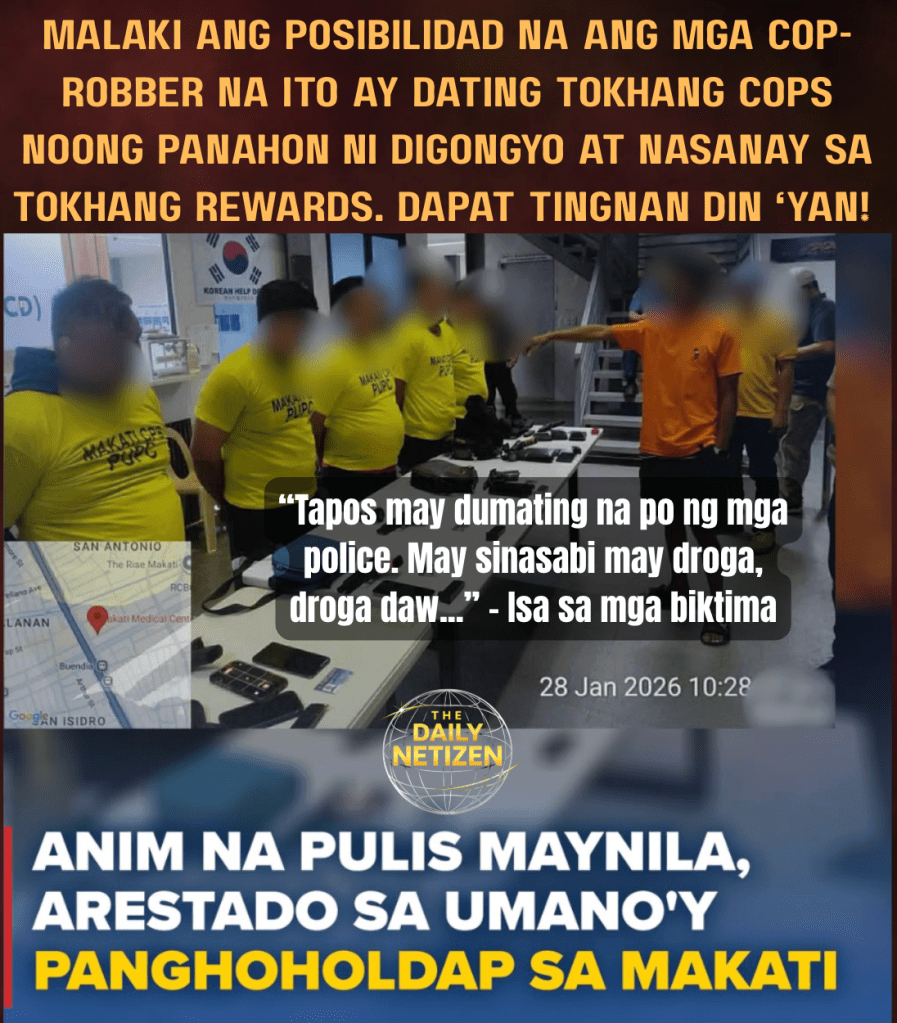 Anim na pulis na nakatalaga sa Malate Police Station ang inaresto matapos masangkot sa sunod-sunod na holdup, torture, at pagnanakaw sa Makati gamit ang paraang kahawig ng mga abusong naging marka ng Tokhang operations noong panahon ni dating Pangulong Rodrigo Duterte, pananakot, pagbanggit ng “droga,” at pangingikil.
